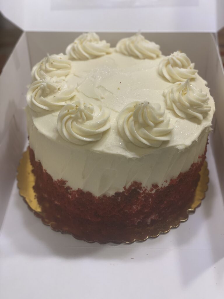 Moist and rich traditional red velvet cake with the perfect hint of chocolate and topped with velvety cream cheese frosting! $80.00-$185.00 Max: Min: 1 Step: 1 Add | |